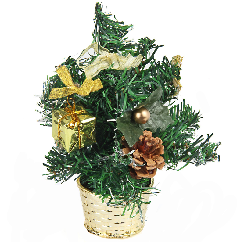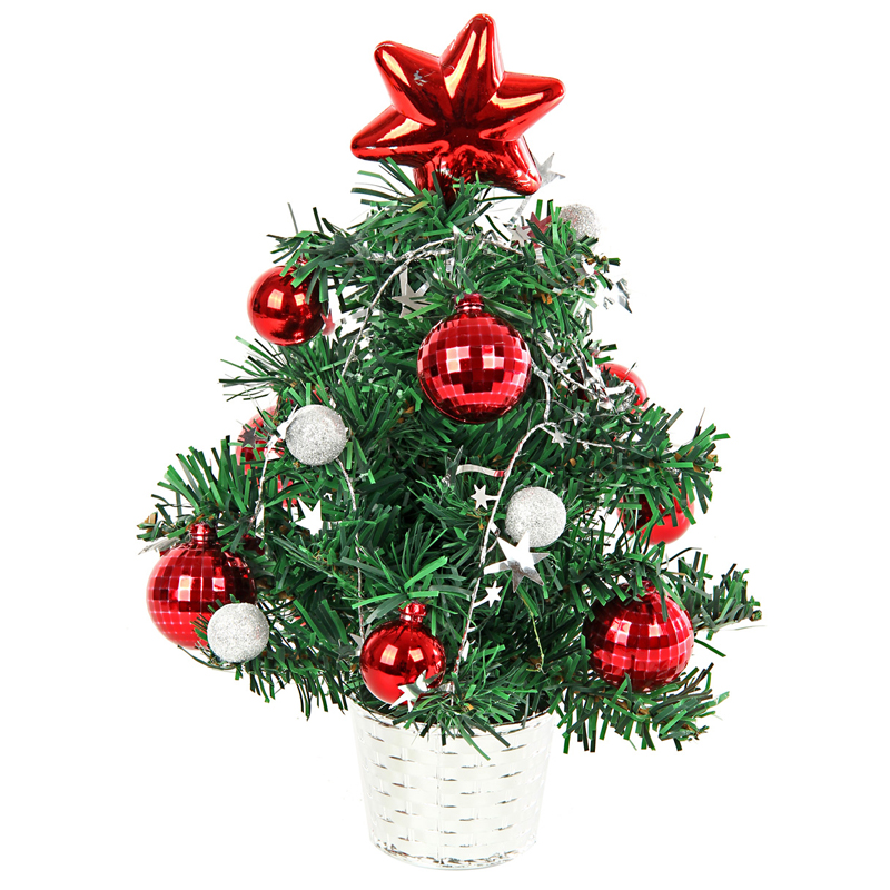 Ель декоративная с красными и серебряными украшениями 30см