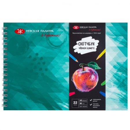 Скетчбук, черная бумага 80г/м2, А5, 22л, спираль, без линовки, обложка - мелованный картон, " Я- Художник! "