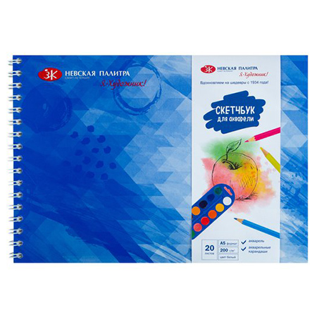 Скетчбук, акварельная бумага 200г/м2, А5, 20л, спираль, без линовки, обложка - мелованный картон, жесткая подложка " Я- Художник! "
