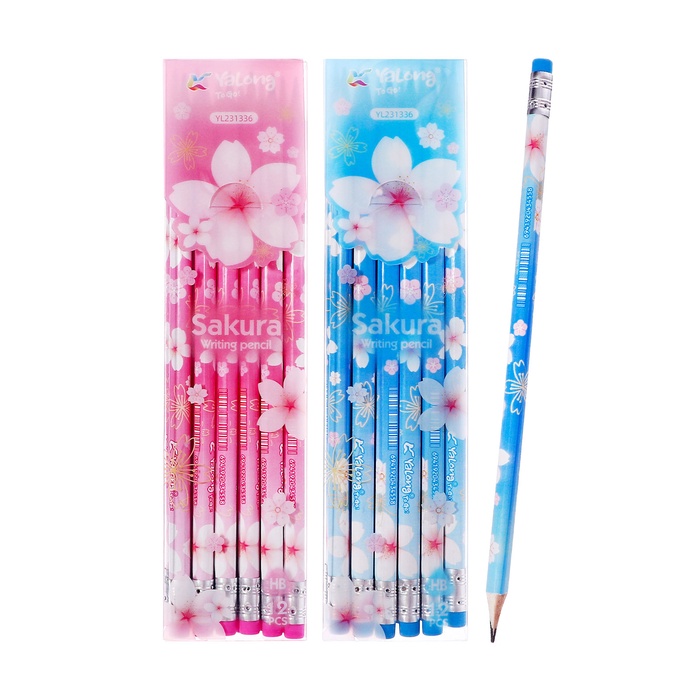 Карандаш чернографитный НВ с ластиком, Сакура МИКС