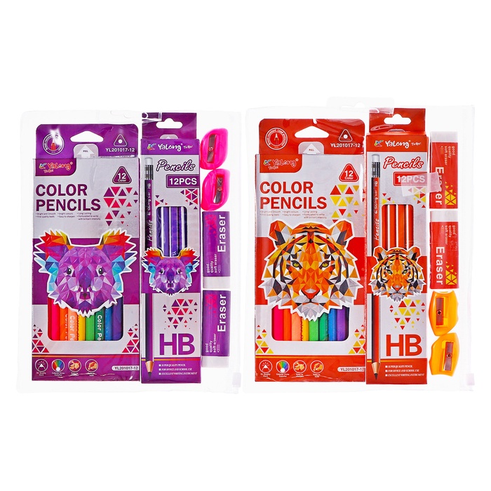 Набор карандашей ч/г 12 шт, цветные 12 шт, 2 точилки, 2 ластика, в папке на молнии МИКС