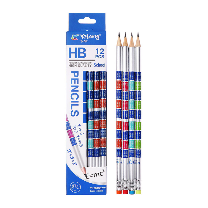 Карандаш чернографитный НВ с ластиком, Таблица умножения, корпус круглый МИКС