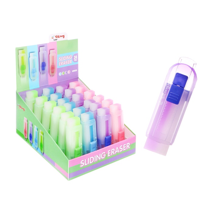 Ластик прямоугольный в цвет корпуса, в пластиковом выдвижном держателе МИКС