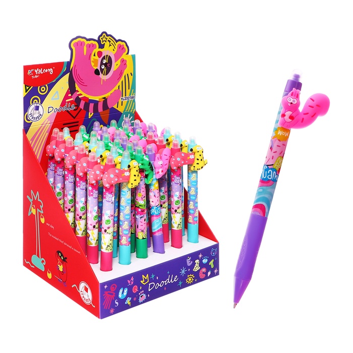 Ручка гелевая СТИРАЕМЫЕ ЧЕРНИЛА, стержень синий, 0.5 мм, автомат, корпус Зверушки МИКС