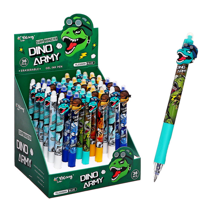 Ручка гелевая СТИРАЕМЫЕ ЧЕРНИЛА, стержень синий, 0.5 мм, автомат, корпус Дино МИКС