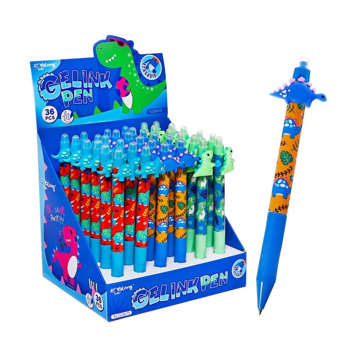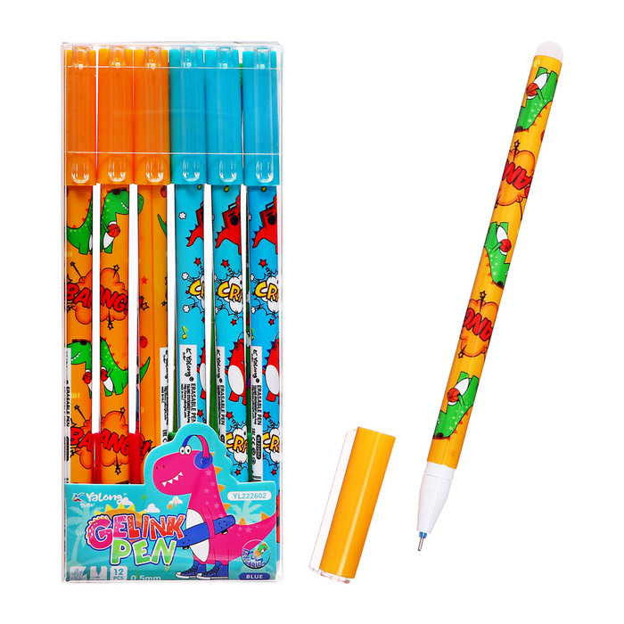 Ручка гелевая СТИРАЕМЫЕ ЧЕРНИЛА, стержень синий, 0.5 мм, корпус Дино МИКС