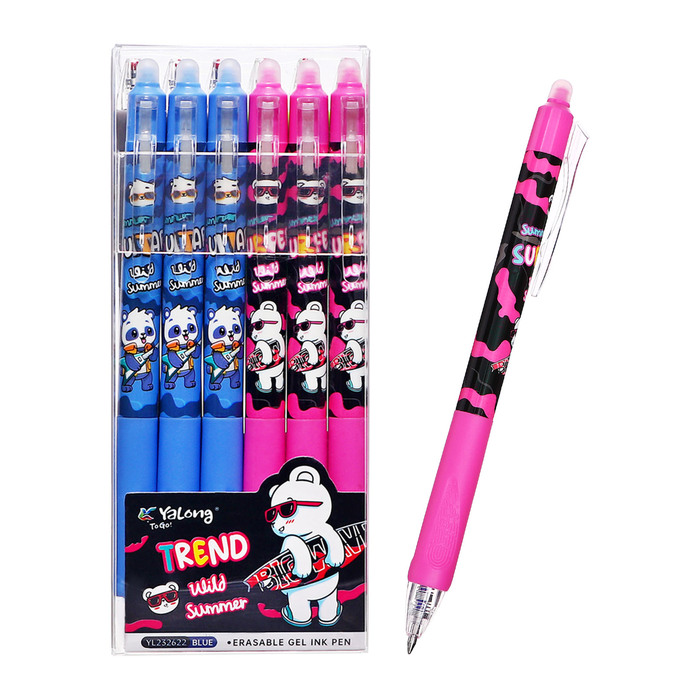 Ручка гелевая СТИРАЕМЫЕ ЧЕРНИЛА, стержень синий, 0.5 мм, автомат, корпус Мишка МИКС
