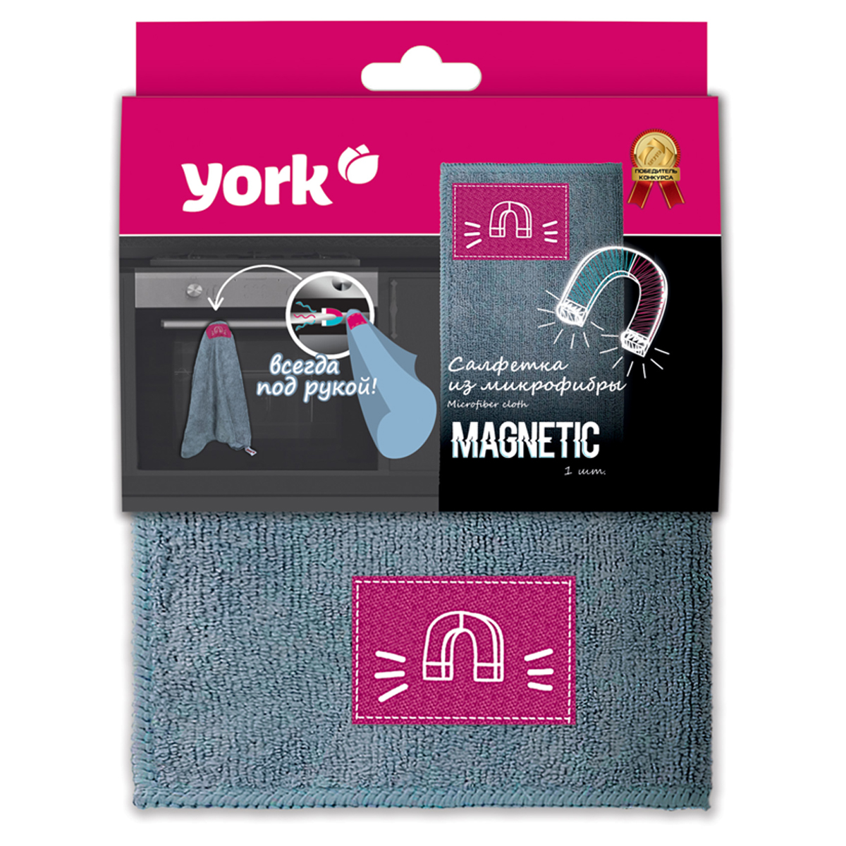 Салфетка для уборки York "МагнитСистема", микрофибра, суперплотная, с магнитом, 40*50см