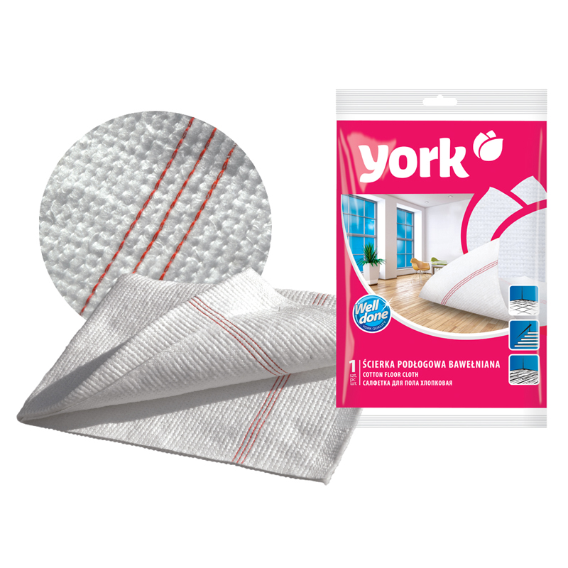 Тряпка для мытья пола York "Мега", хлопок/полиэстер, 80*100см, 260г/м2, белая, инд. упаковка