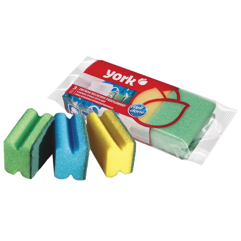 Губки для посуды York, поролон с абразивным слоем, профилированные, 9*7*4,3, 3шт.