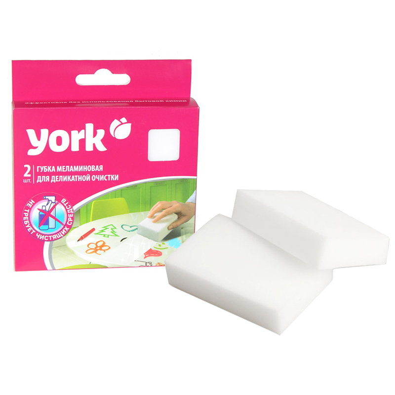 Губки меламиновые York, для деликатной очистки, 11*6*2,5см, 2шт.