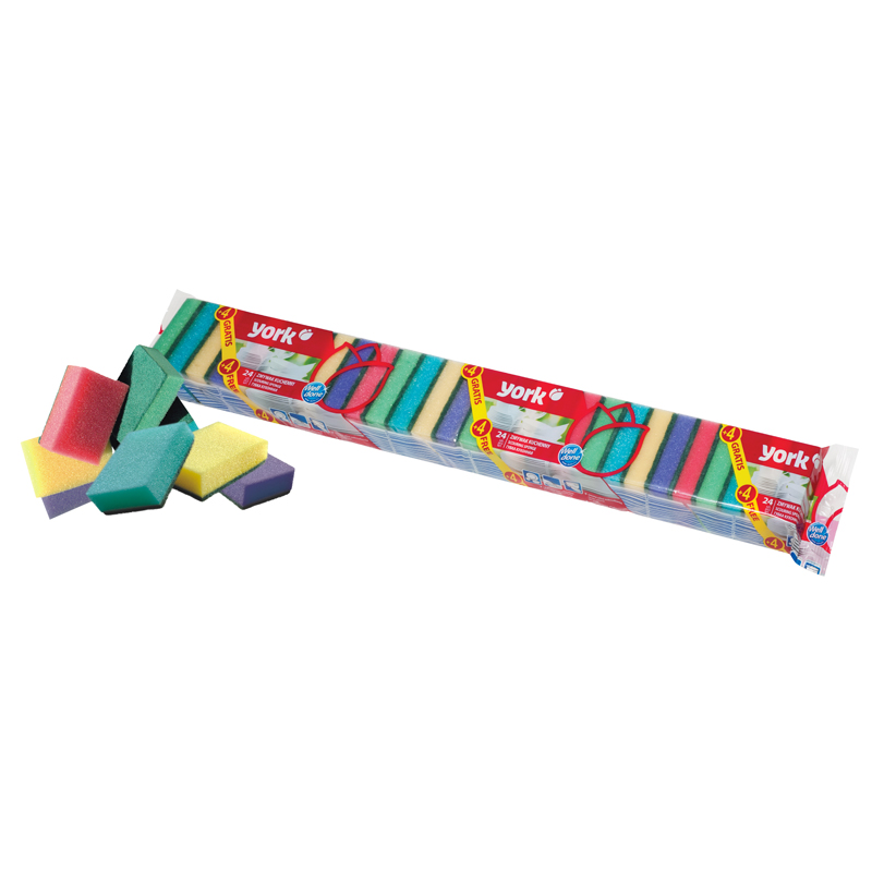 Губки для посуды York "Джамбо", поролон с абразивным слоем, 24+4шт.