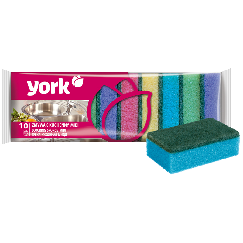 Губки для посуды York "Midi", поролон с абразивным слоем, 8*5*2,5см, 10шт.