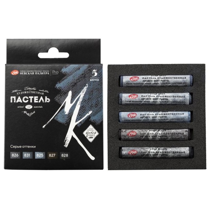Пастель сухая набор 5 цветов, Soft, ЗХК "Сонет", D-10 мм /L-65 мм, круглое сечение, серые оттенки, 2531422206