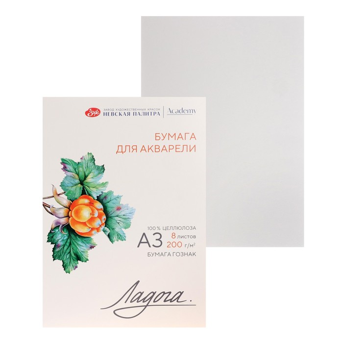 Бумага для акварели в папке А3, ЗХК "Ладога", 8 листов, 200 г/м2, среднезернистая, 252781937