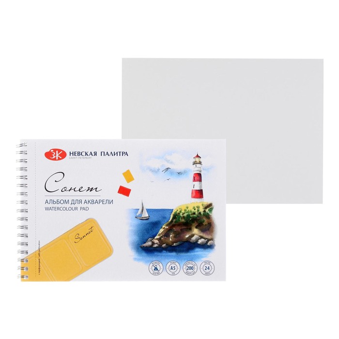 Альбом для акварели А5 148 х 210 мм), ЗХК "Сонет", 24 листа, 200 г/м2, на гребне, среднезернистая, (80451622)