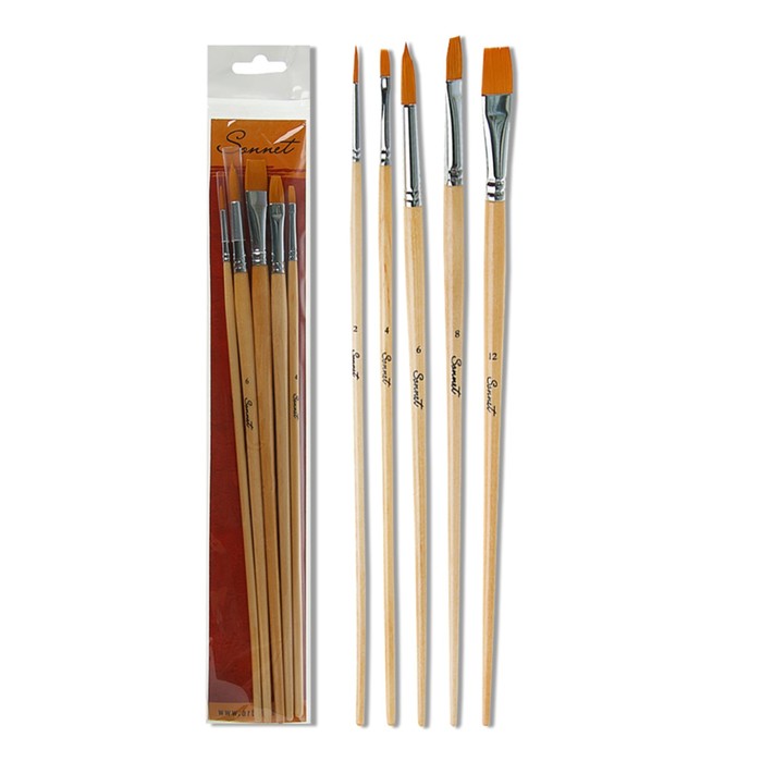 Набор кистей Синтетика 5 штук ЗХК "Сонет №3" (круглые №: 2,6; плоские №: 4,8,12) длинная ручка