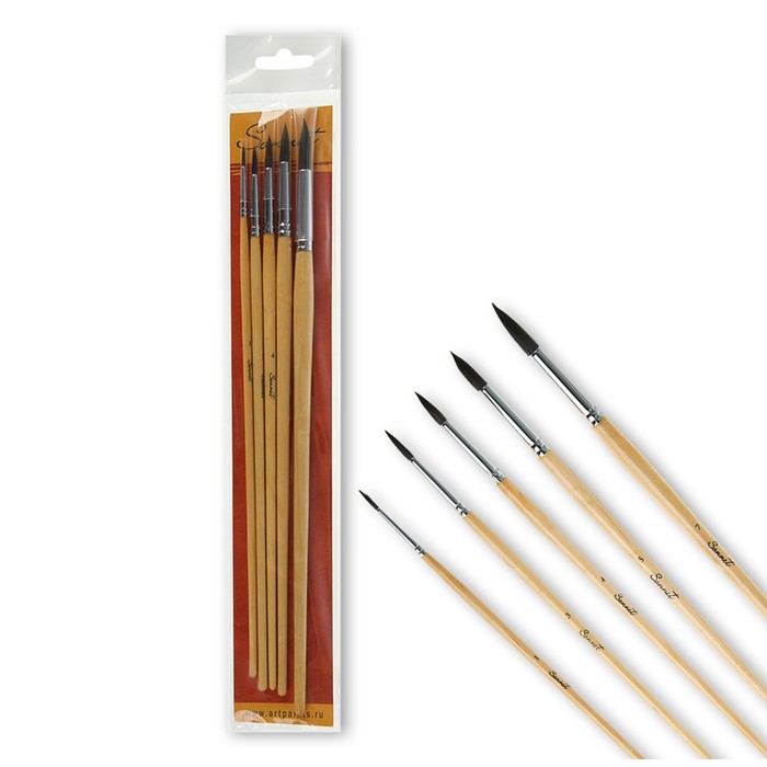 Набор кистей Белка 5 штук, ЗХК "Сонет", №1, (круглые №1; 3; 4; 5; 7), длинная ручка, 8745468