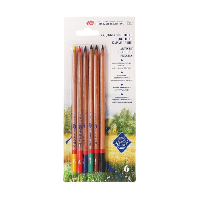 Карандаши цветные набор 6 цветов, ЗХК "Мастер-Класс", профессиональные
