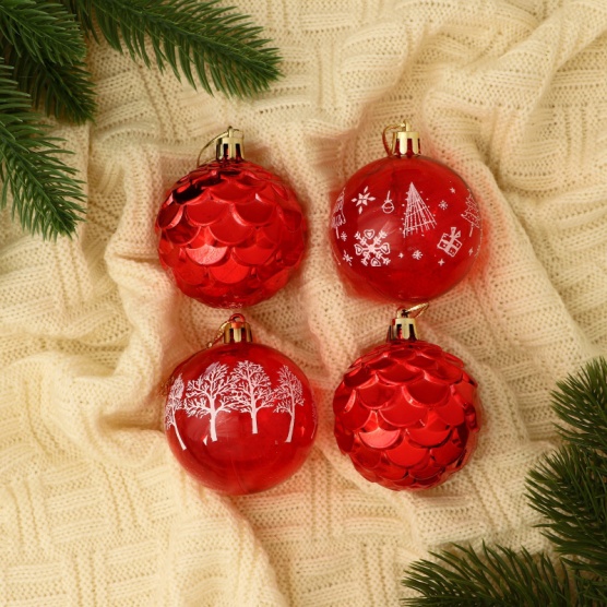 Шар пластик d-5,5 см, 1 шт "Новогодние забавы" шишки геометрия, красный