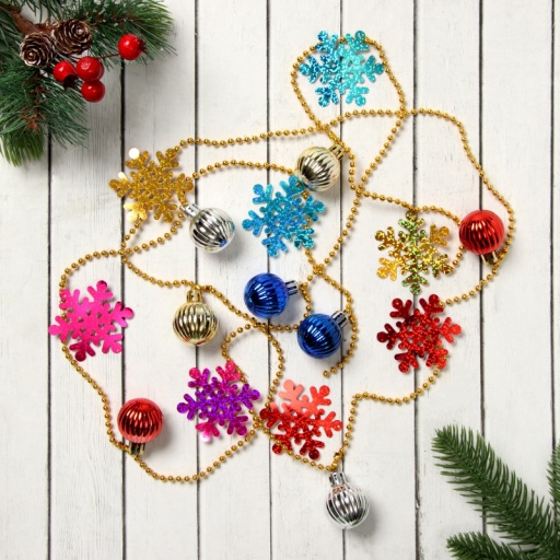 Бусы на ёлку 2,7 м 2,3 см "Снежинки" микс