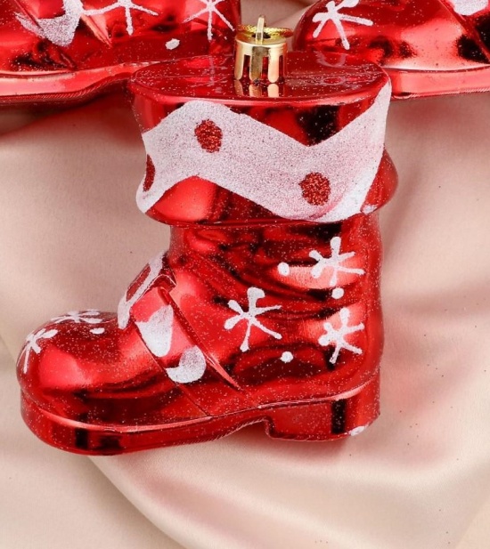 Украшение ёлочное "Ботинок" 1 шт 8х8 см, бело- красный
