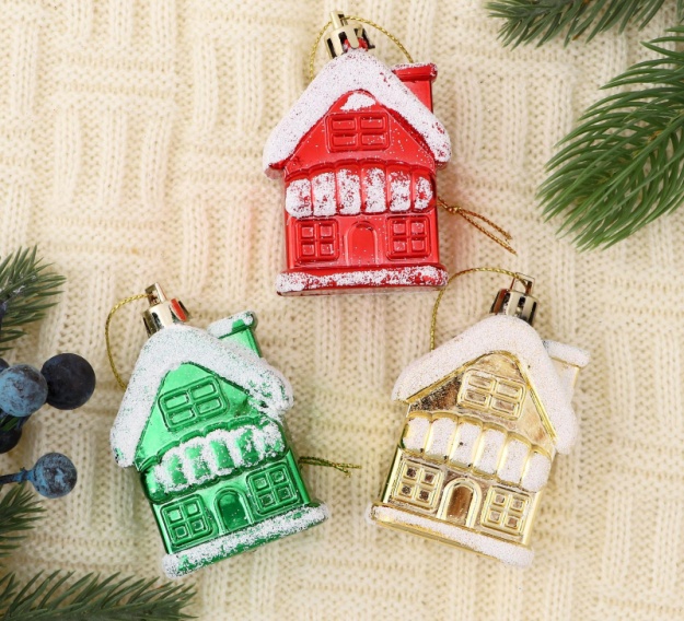 Украшение ёлочное "Домик в снегу" 1шт 5,5х3,5 см, микс