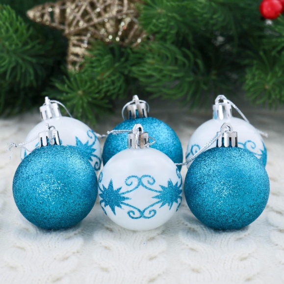 Шар пластик d-5 см, 1 шт "Зимняя сказка" бело-голубой