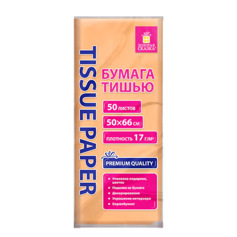 Цветная бумага ТИШЬЮ 17г/м2, 50х66см, 50 листов пастель бежевый, ЗОЛОТАЯ СКАЗКА, 116487