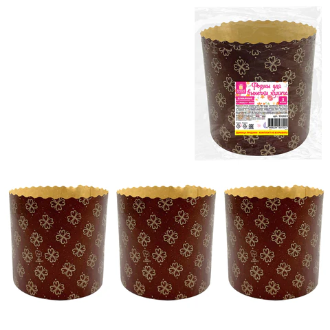 Форма бумажная для выпечки пасхального кулича "Выпечка" КОМПЛЕКТ 6шт, 7х8,5см, ЗОЛОТАЯ СКАЗКА, 592660
