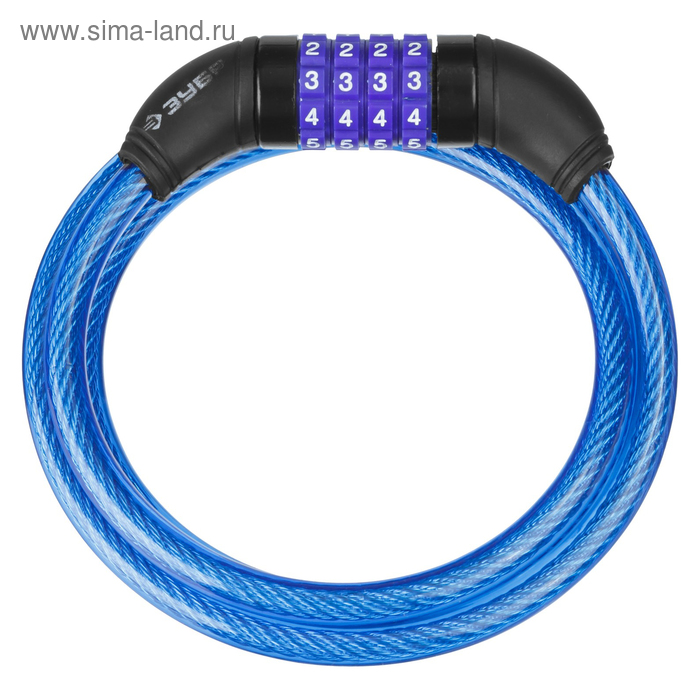 Замок тросовый "ЗУБР" СТАНДАРТ, 8х650 мм, кодовый