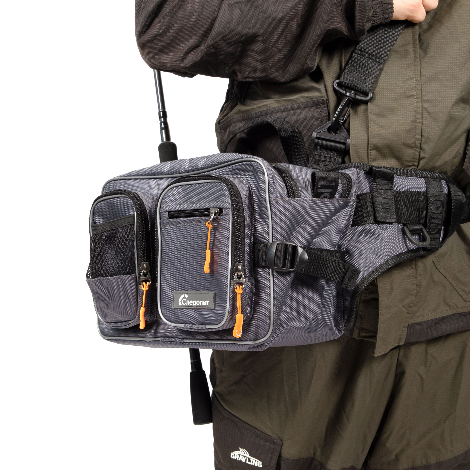 Сумка рыболовная поясная "СЛЕДОПЫТ" Fishing Belt Bag Light, 44х35х6 см, без коробок, цв. серый/7/