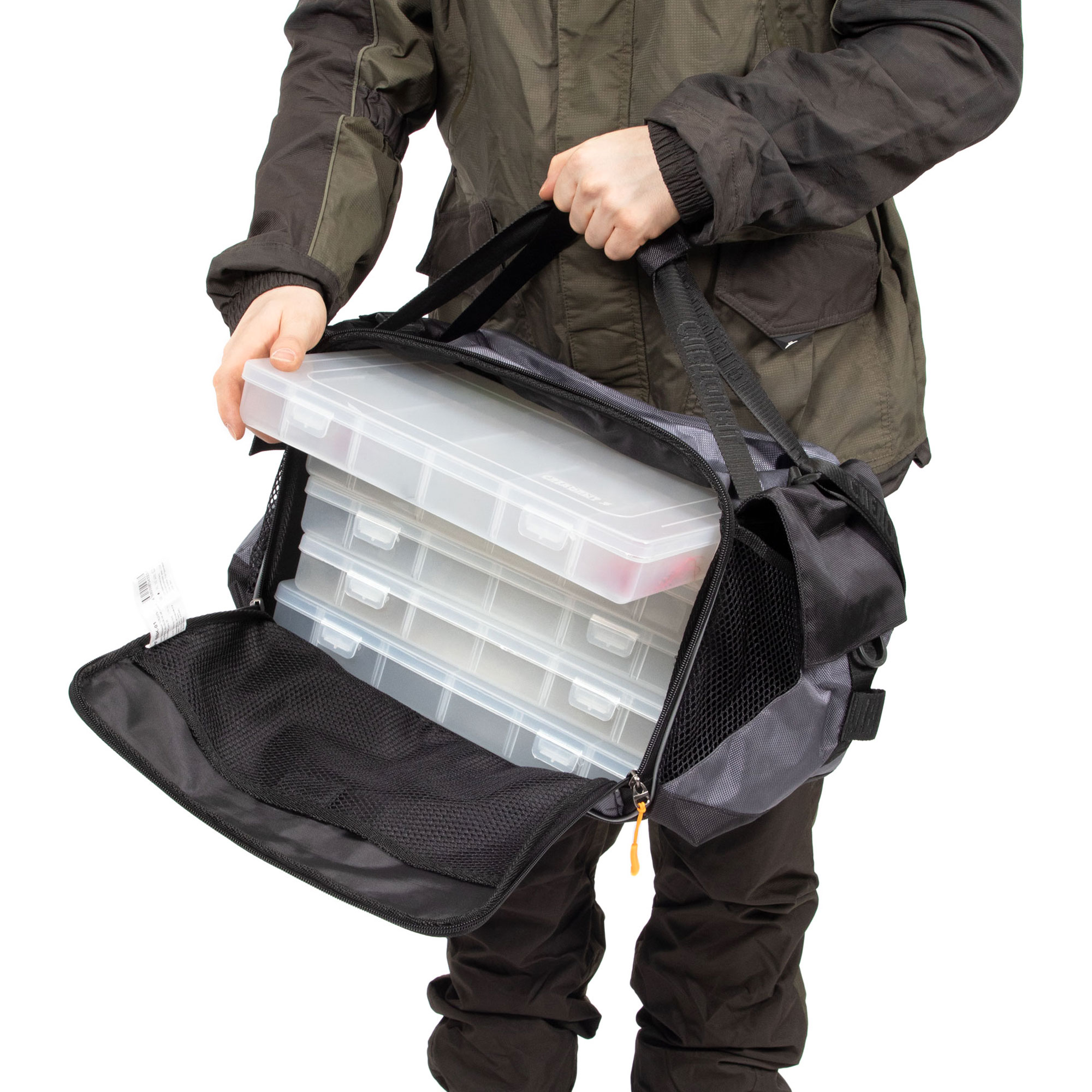Сумка рыболовная "СЛЕДОПЫТ" Lure Bag XL, 40х28х24 см, цв. серый + 5 коробок Luno 28/2/