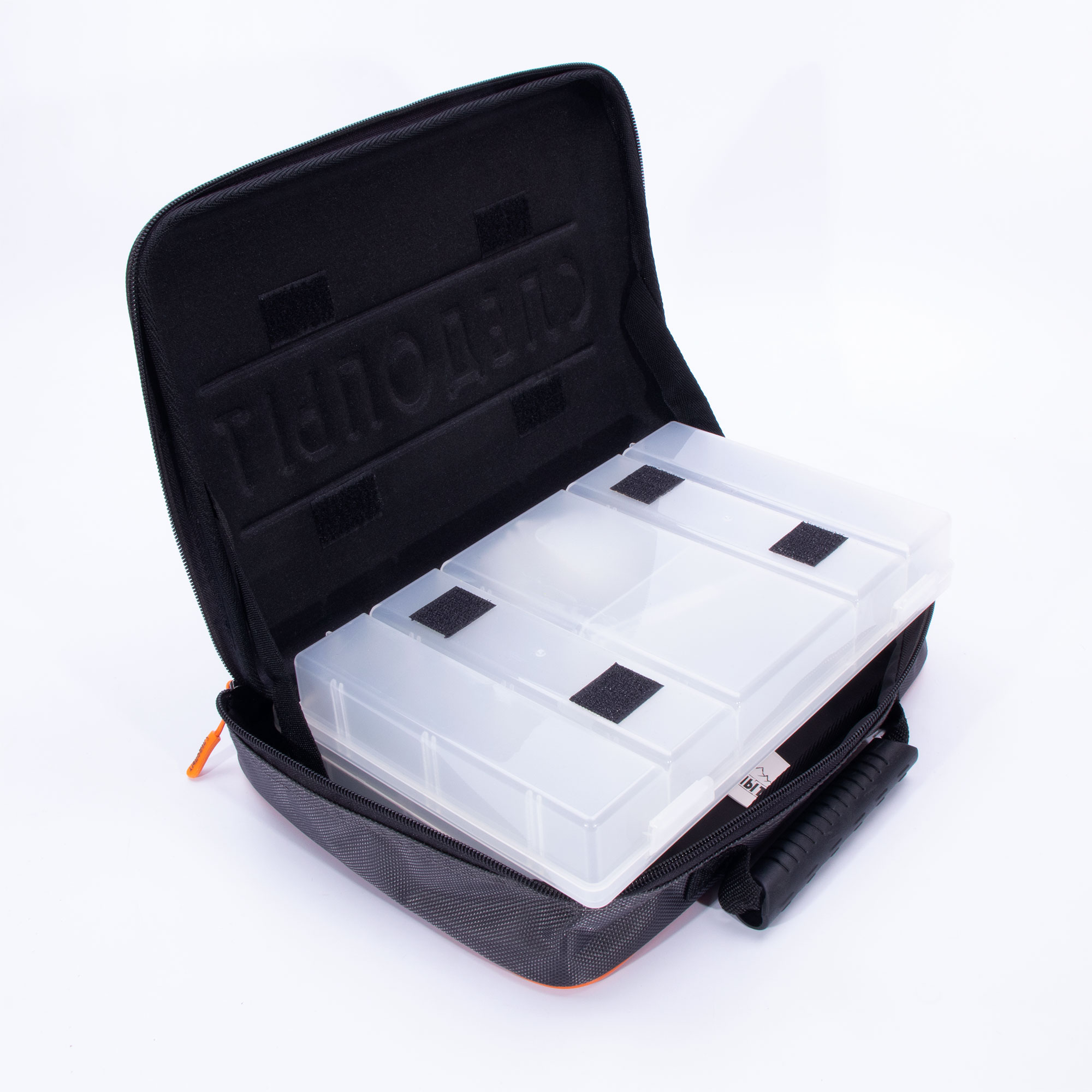 Сумка рыболовная "СЛЕДОПЫТ" Module Case, 30х22х10 см, цв. серый + 2 коробки Luno 20/3/