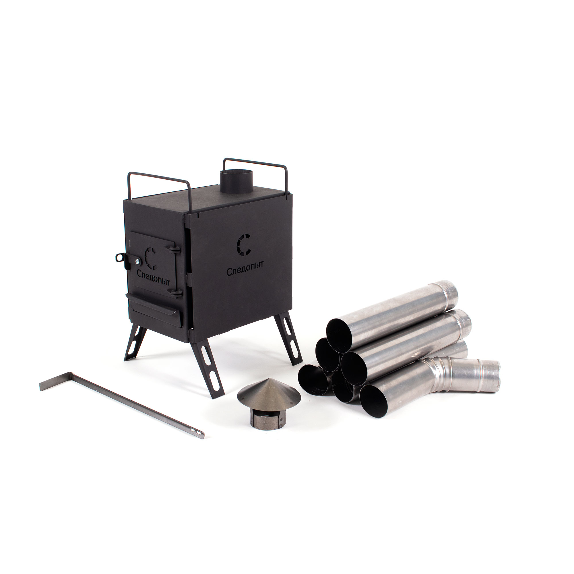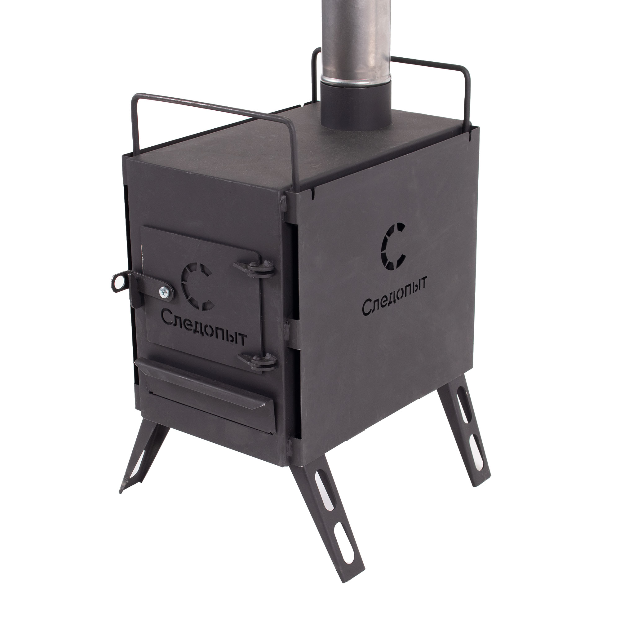 Печь дровяная "Следопыт" Light малая, сталь 1 мм (с экранами и угловыми трубами)