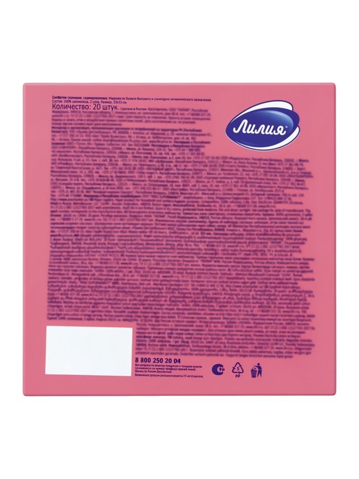 Салфетки бумажные, Лилия 33×33 «Красный» 2сл 20 л