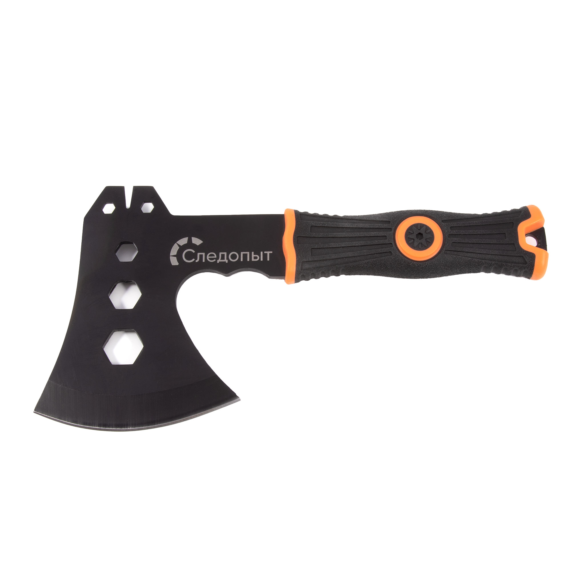 Топор туристический СЛЕДОПЫТ 310х114х71 мм с огнивом и свистком, 475 гр в чехле/20/