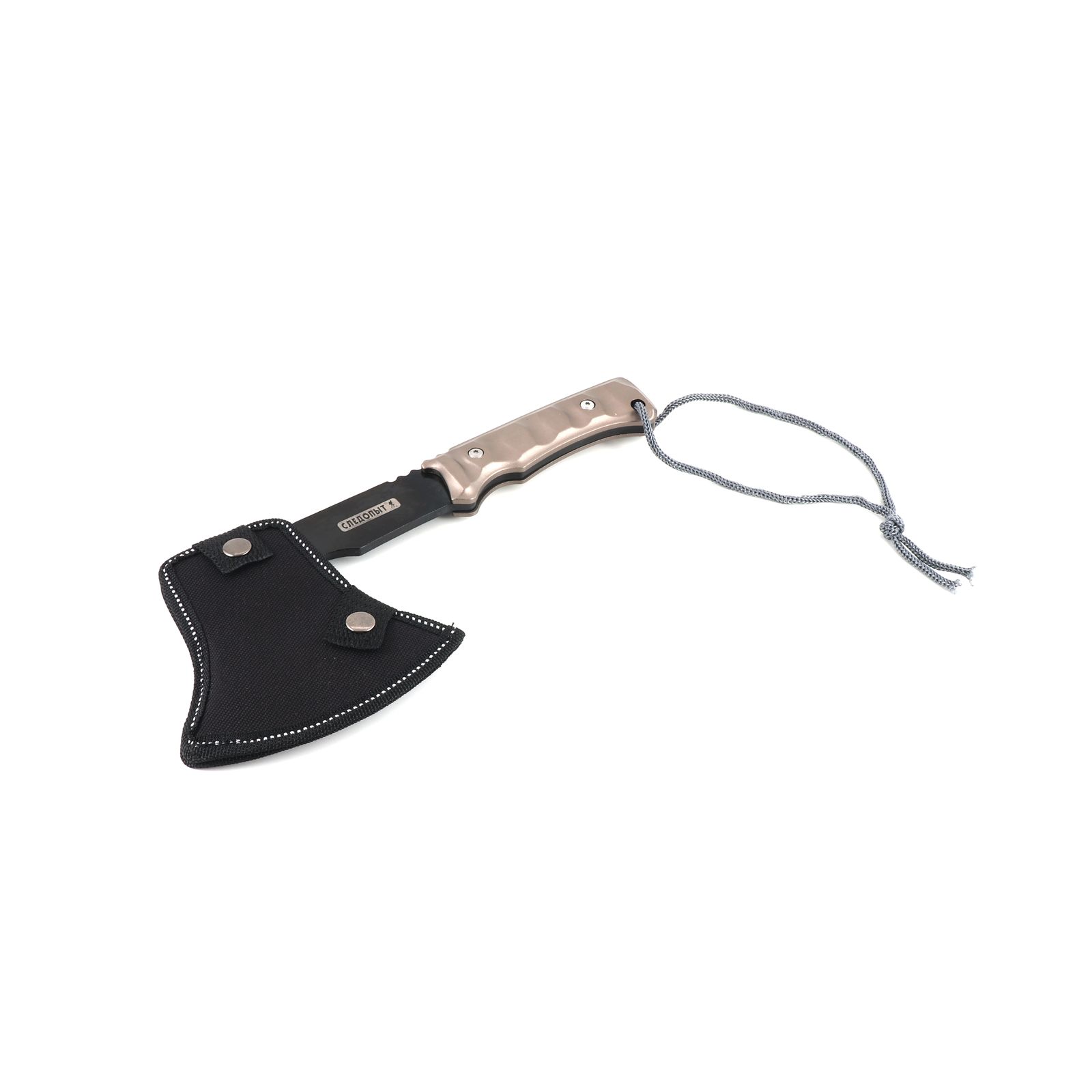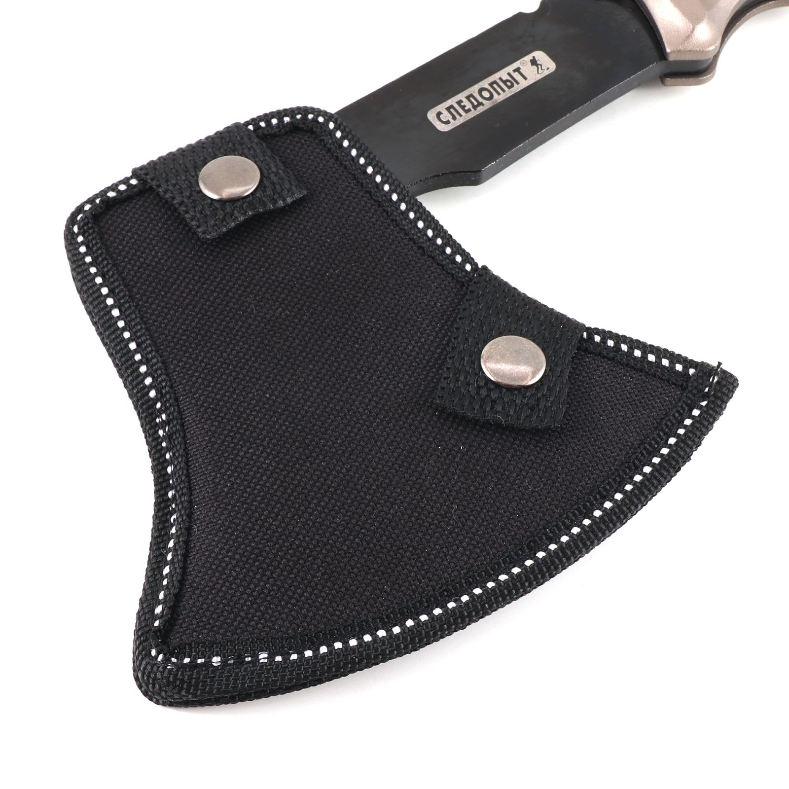 Топор туристический СЛЕДОПЫТ 310х114х71 мм с огнивом и свистком, 475 гр в чехле/20/