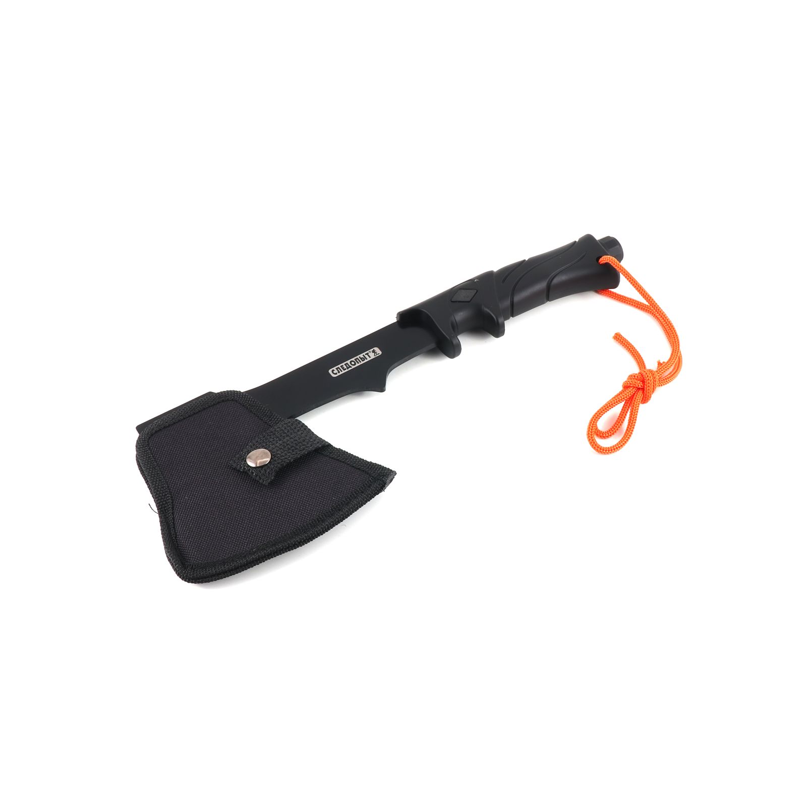 Топор туристический СЛЕДОПЫТ 310х114х71 мм с огнивом и свистком, 475 гр в чехле/20/