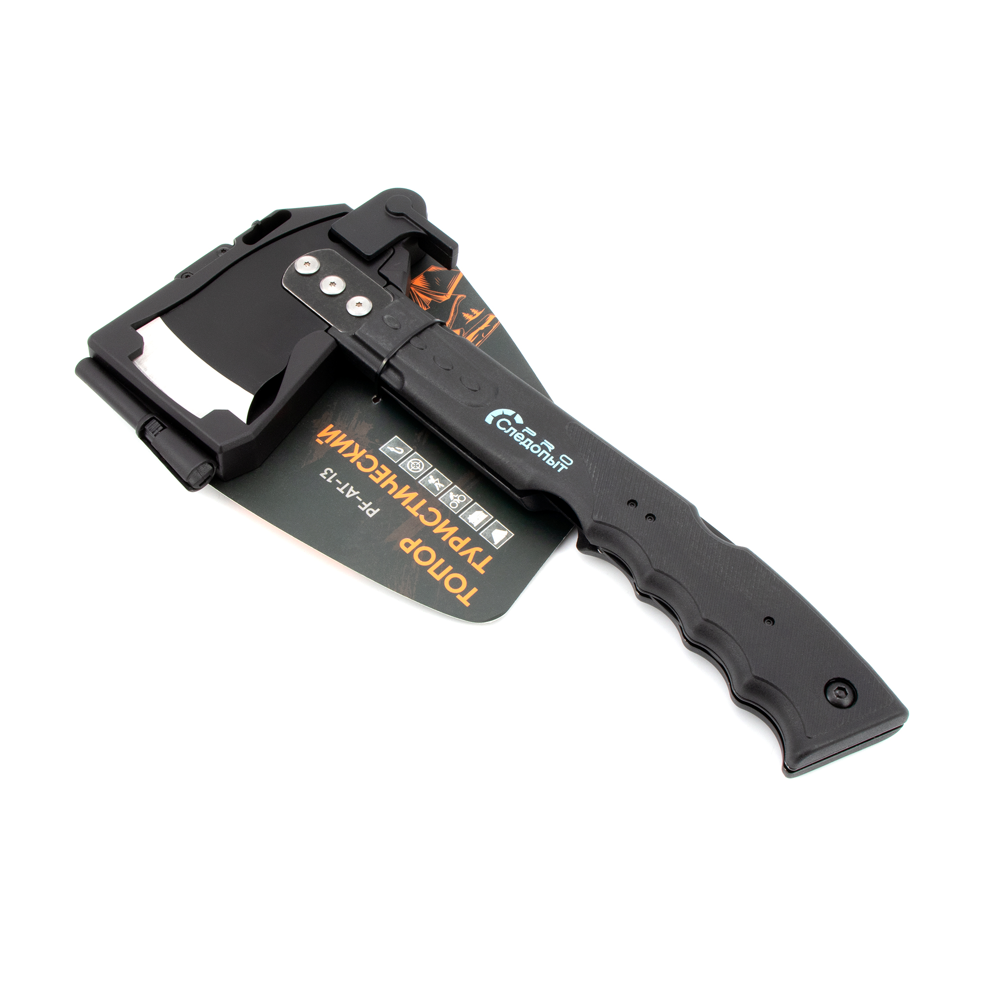 Топор туристический СЛЕДОПЫТ 340х120х70мм с пилой, огнивом и свистком, 775 гр в чехле/20/