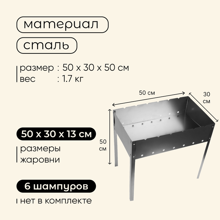 Мангал-дипломат + 6 шампуров 390мм (410х280х480, сталь 1,5мм) МД-6