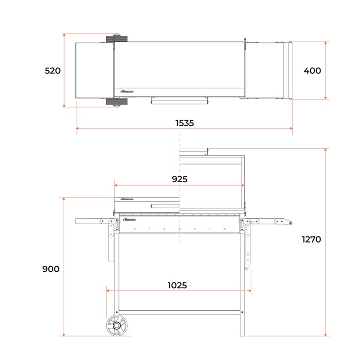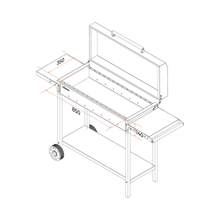 Мангал «МАН 302», 131,5 × 52 × 79,7 см, 3 мм, колёса, боковая полка