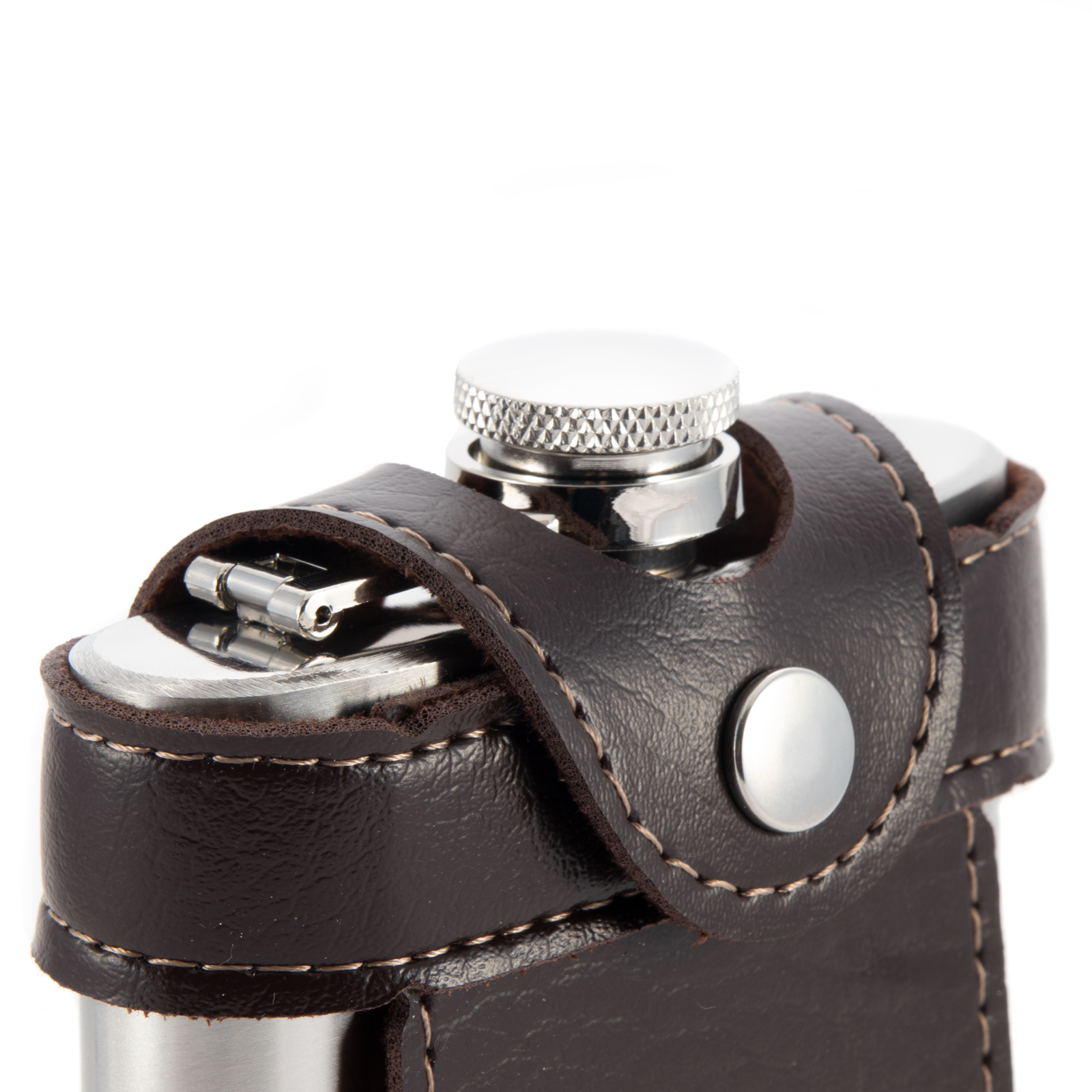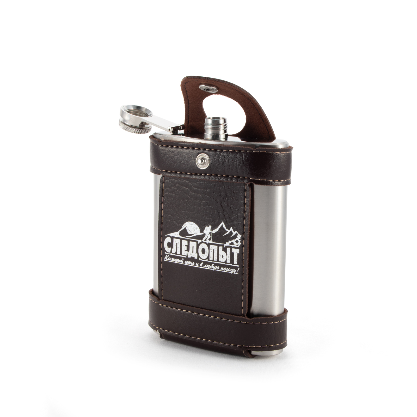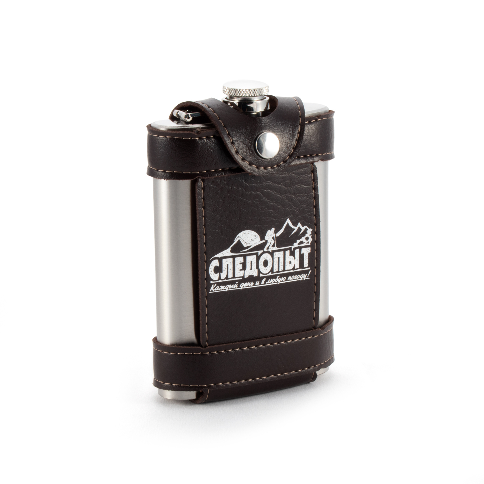 Фляжка «СЛЕДОПЫТ - Flage» в кож. чехле с тиснением, 260 мл, цв. корич/100/