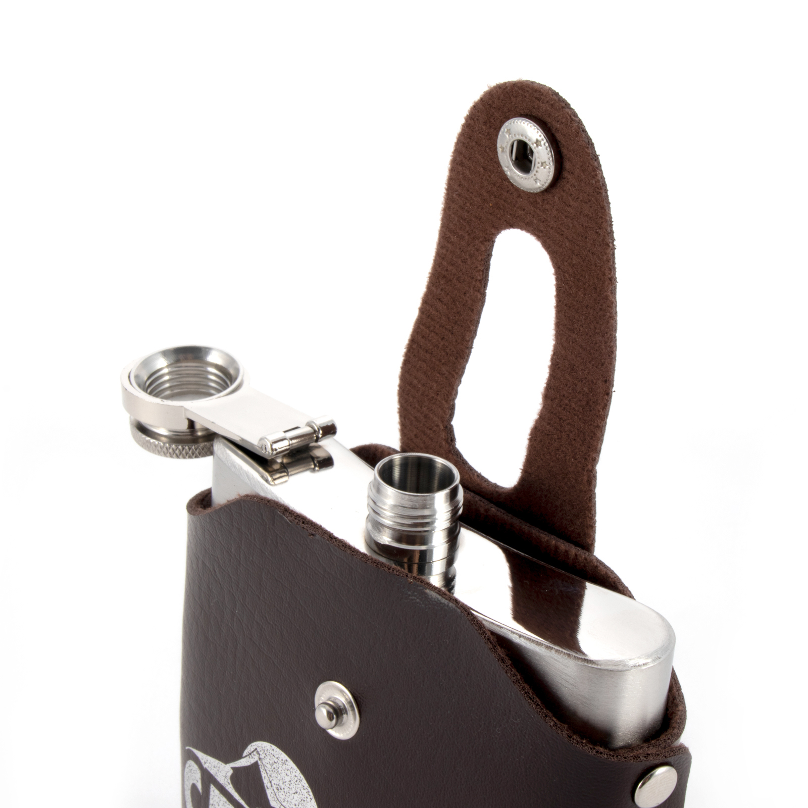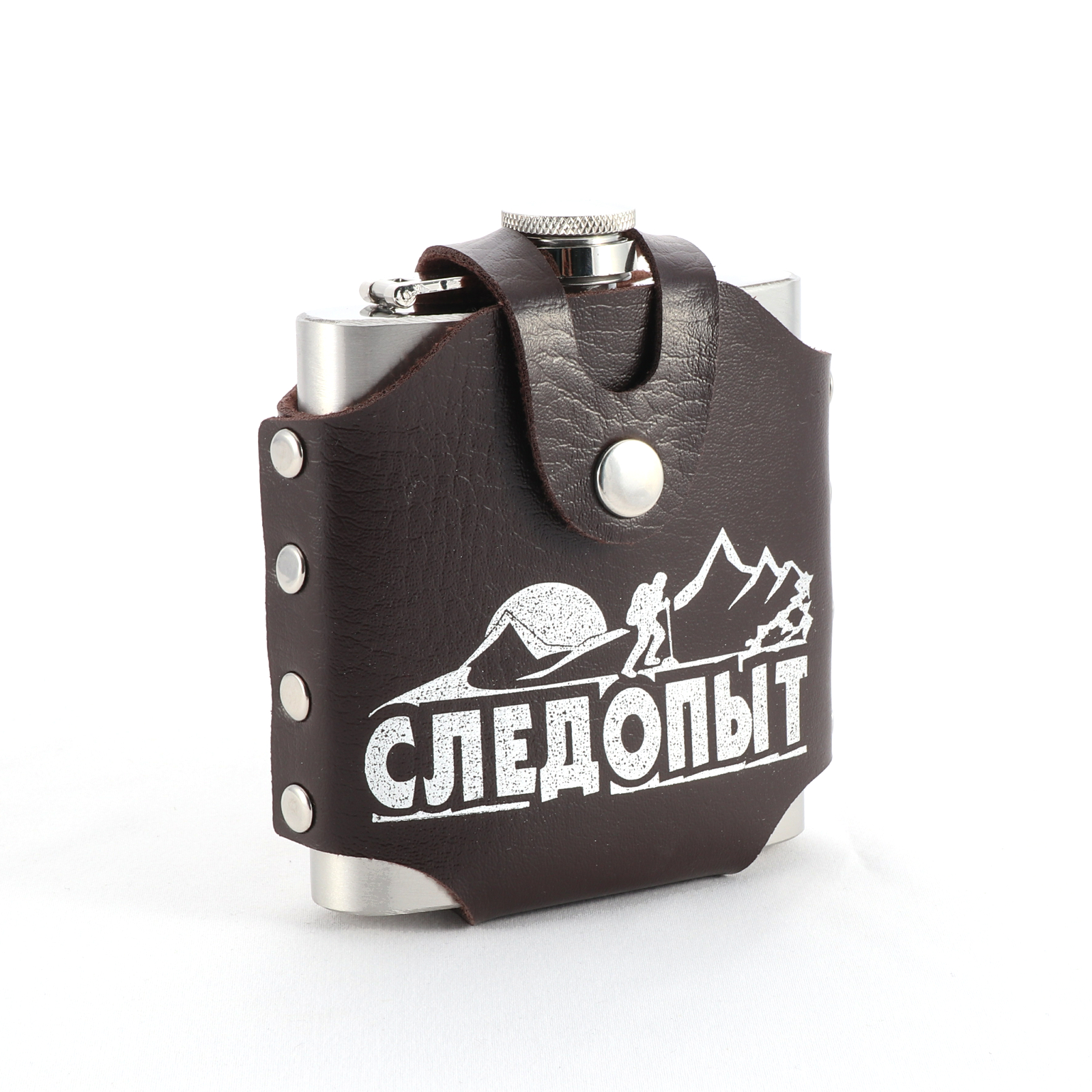 Фляжка «СЛЕДОПЫТ - Freezly» в кож. чехле, 180 мл, цв. корич/100/