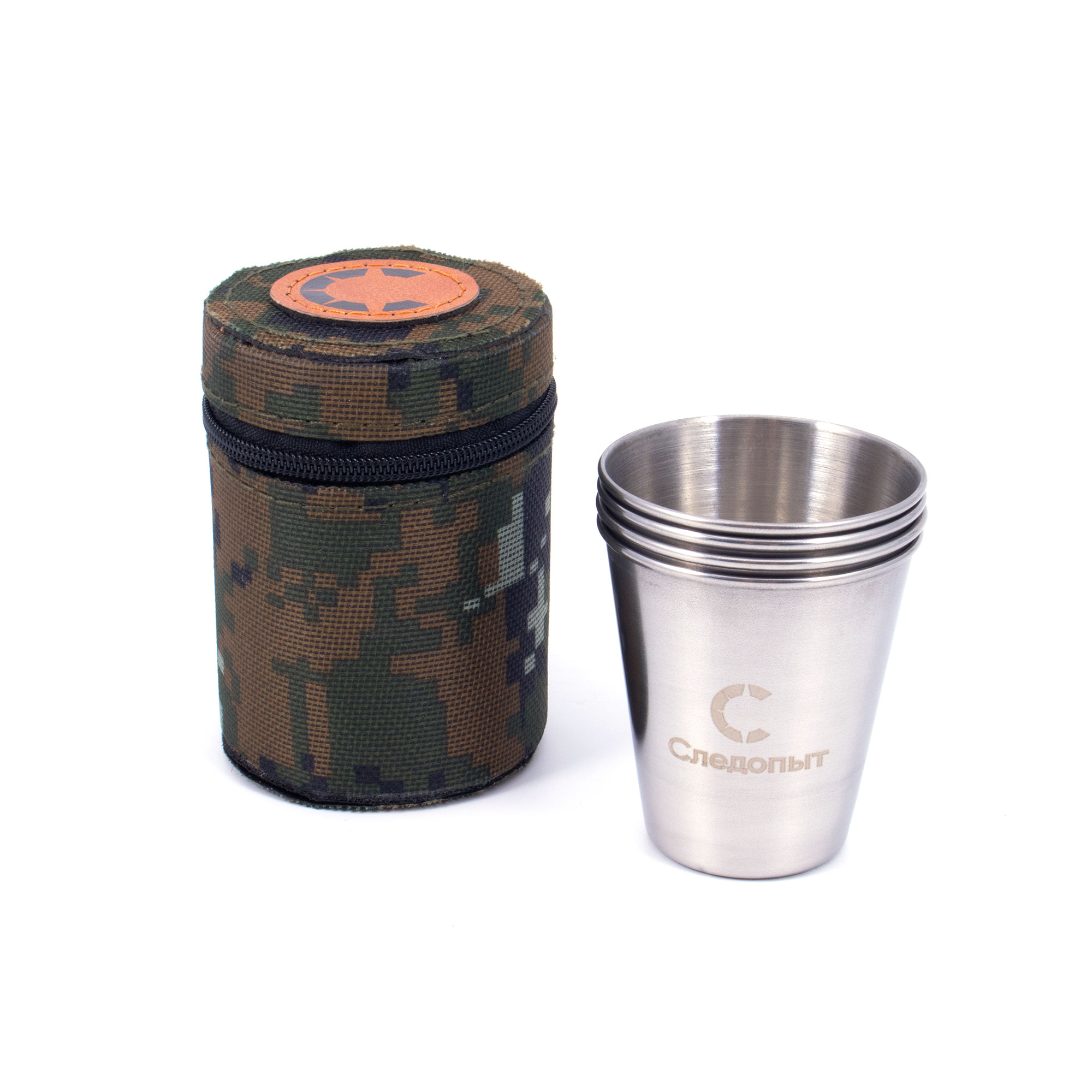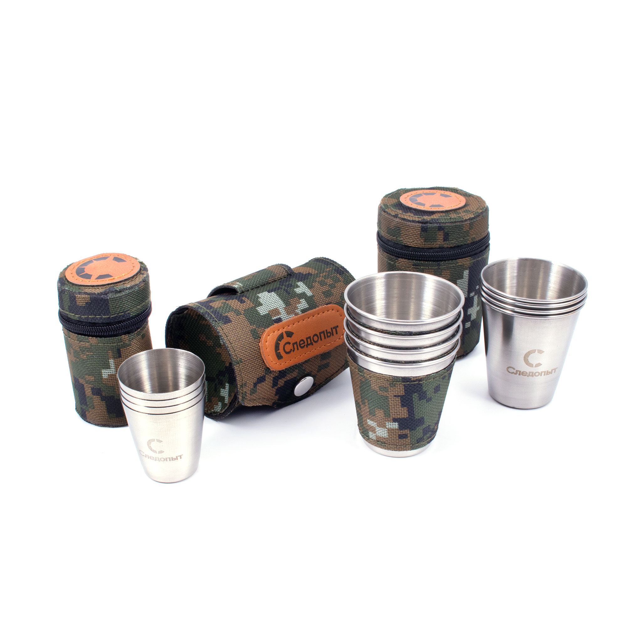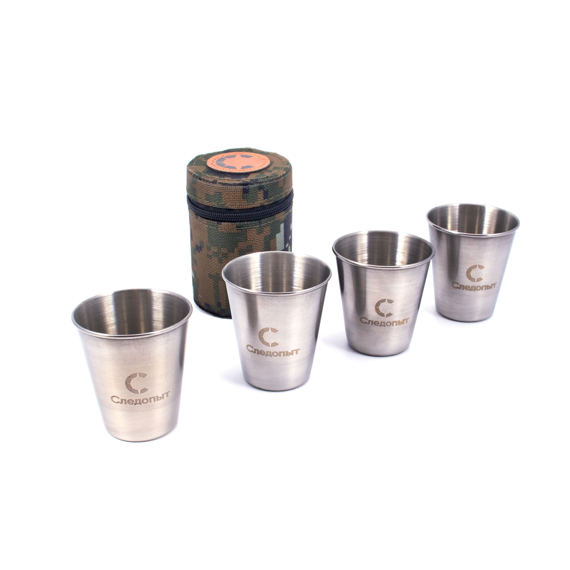 Рюмка-стопка "СЛЕДОПЫТ" 60 мл в тубе из oxford camo pixel, рюмки без оплетки, 4 шт/200/