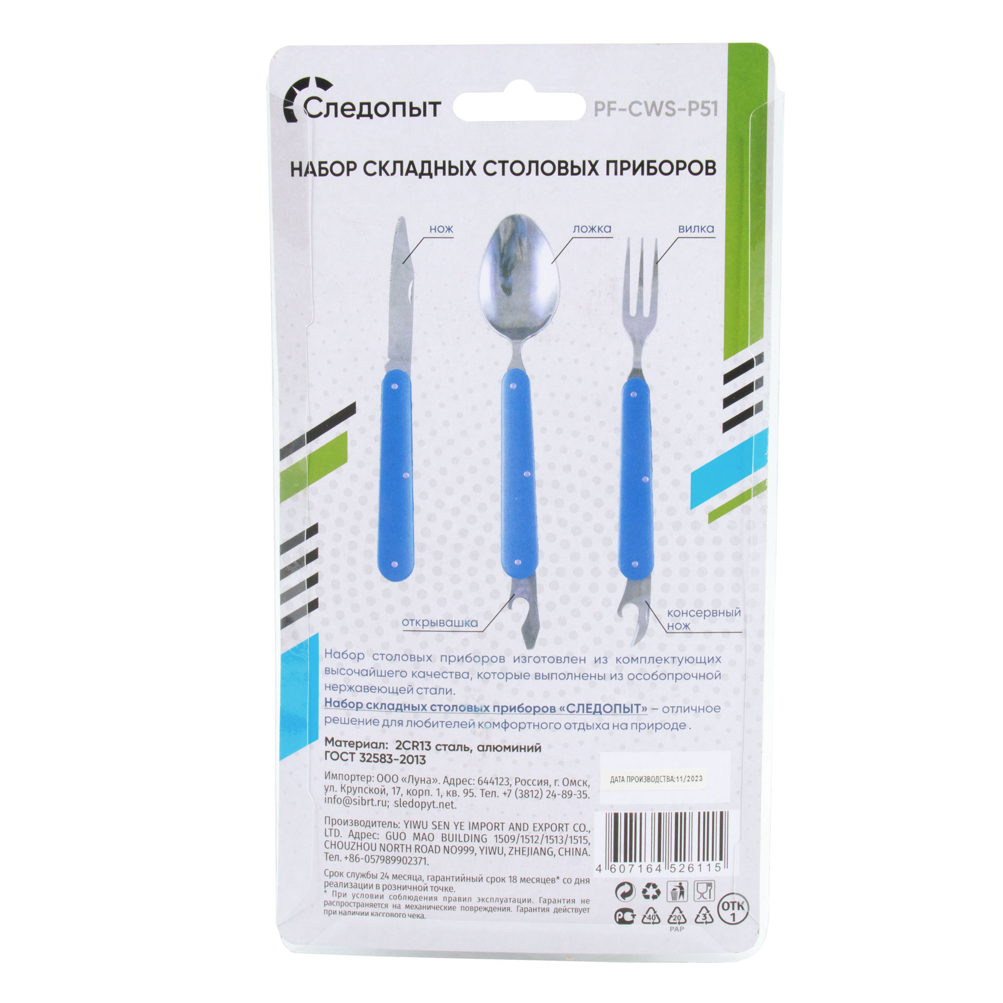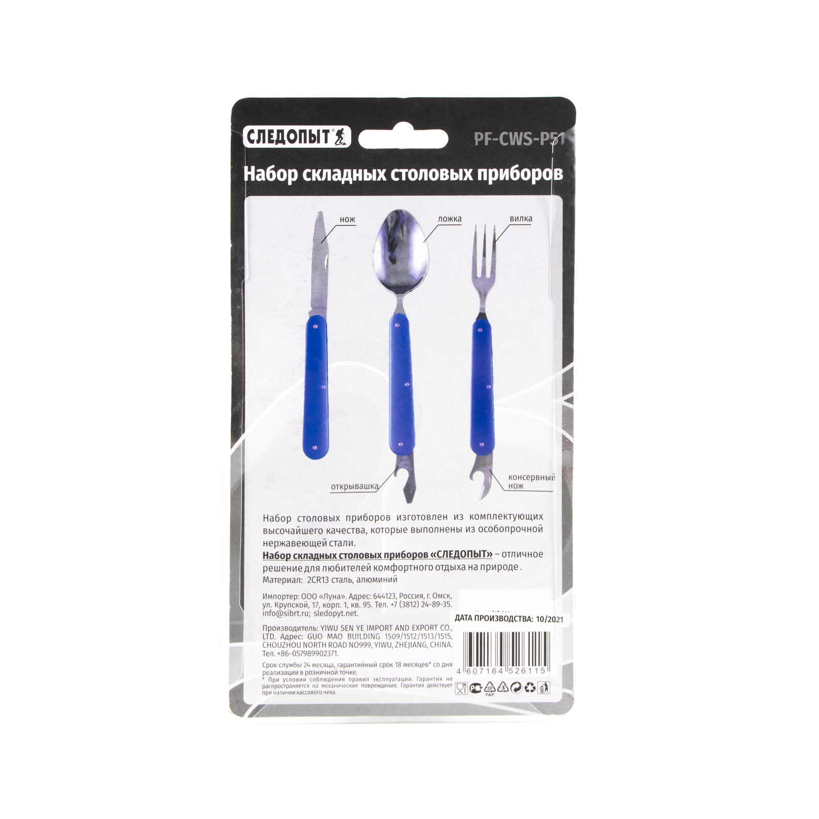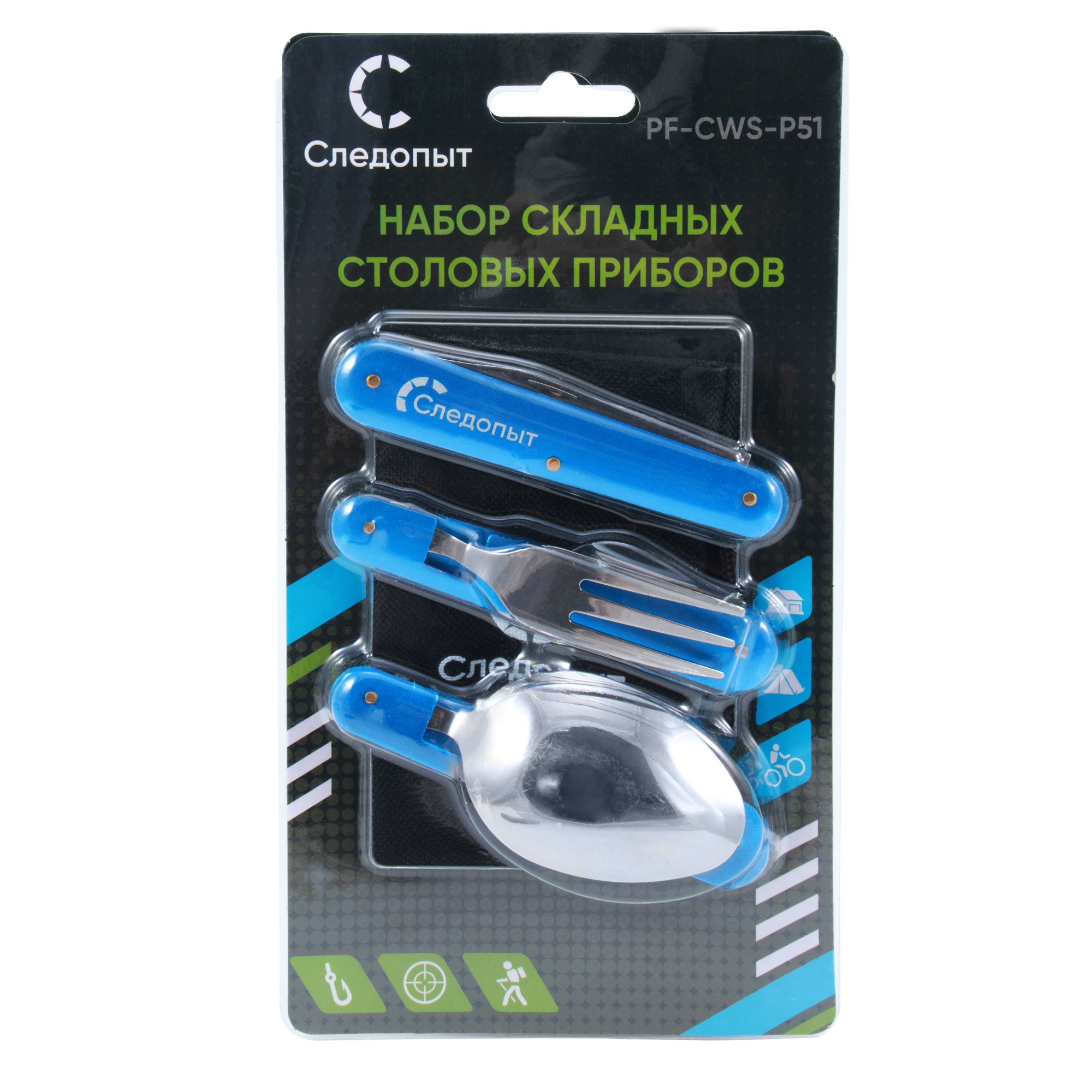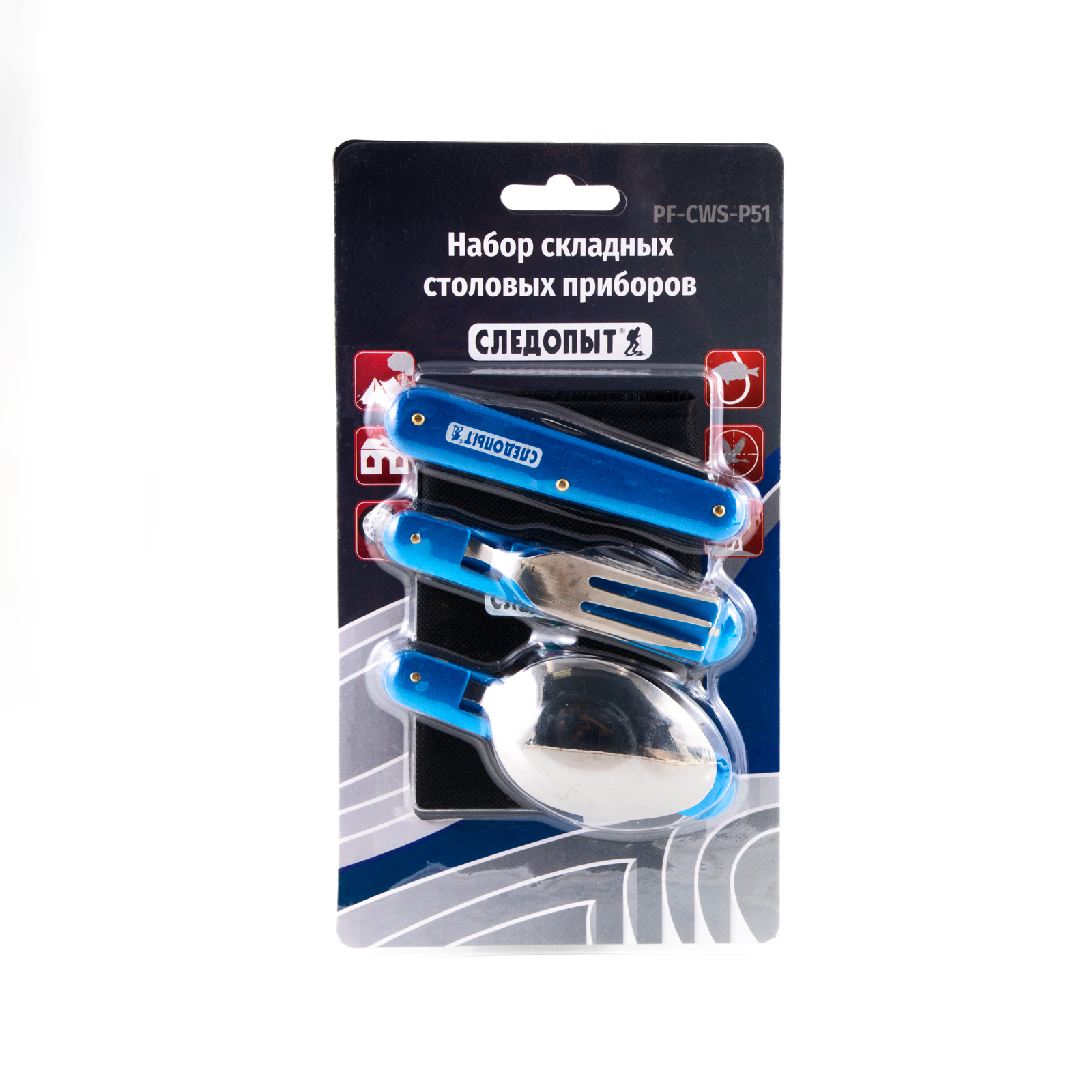 Набор складных столовых приборов "СЛЕДОПЫТ", в чехле (ложка, вилка, нож), на блистере/120/