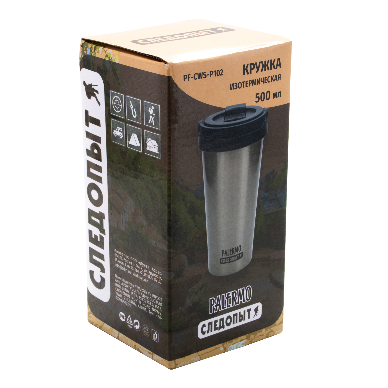 Термокружка "СЛЕДОПЫТ-CALIPSO", нерж. сталь, 450 мл/50/