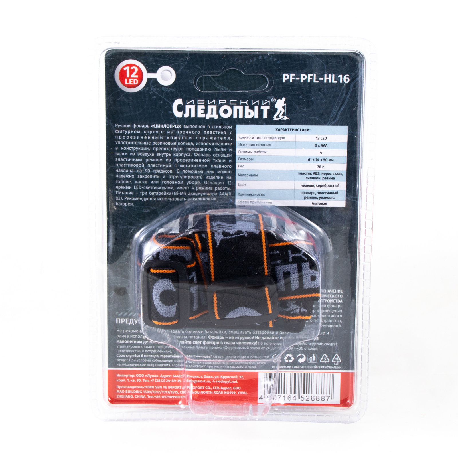 Фонарь налобный "СИБИРСКИЙ СЛЕДОПЫТ-Циклоп 12", 12L, 3хААА/100/