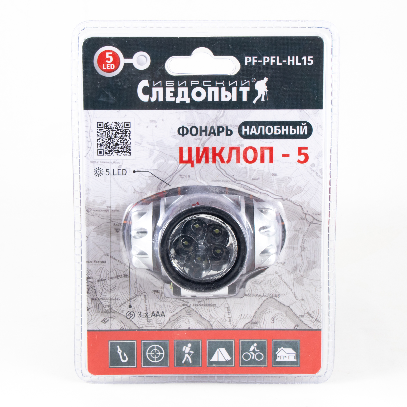 Фонарь налобный "СИБИРСКИЙ СЛЕДОПЫТ-Циклоп 5", 5L, 3хААА/100/