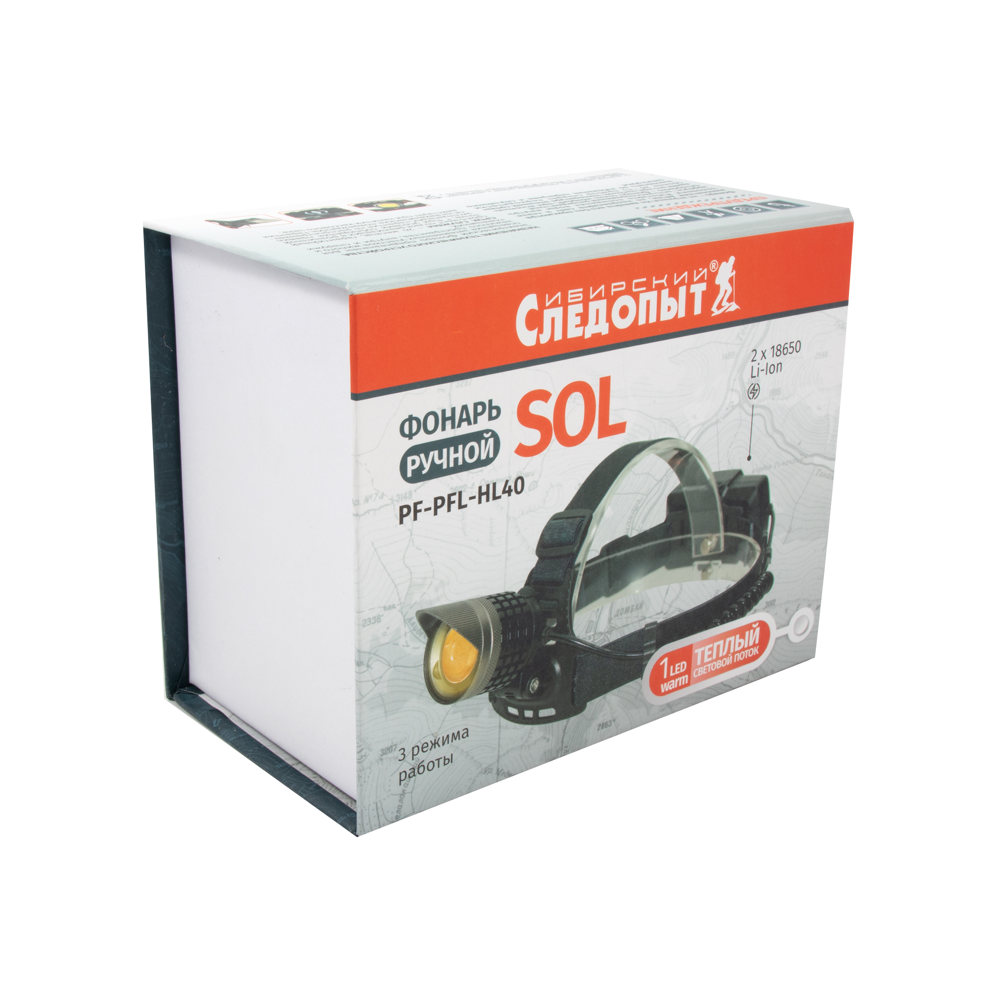 Фонарь налобный "Сибирский Следопыт -SOL", 1LED WARM,аккум.2x2200mAh/30/